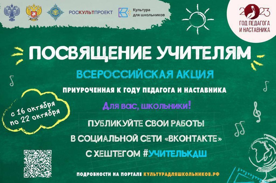 16 октября в рамках межведомственного культурно-образовательного проекта «Культура для школьников» стартует Всероссийская акция «Посвящение учителям», приуроченная к Году педагога и наставника.